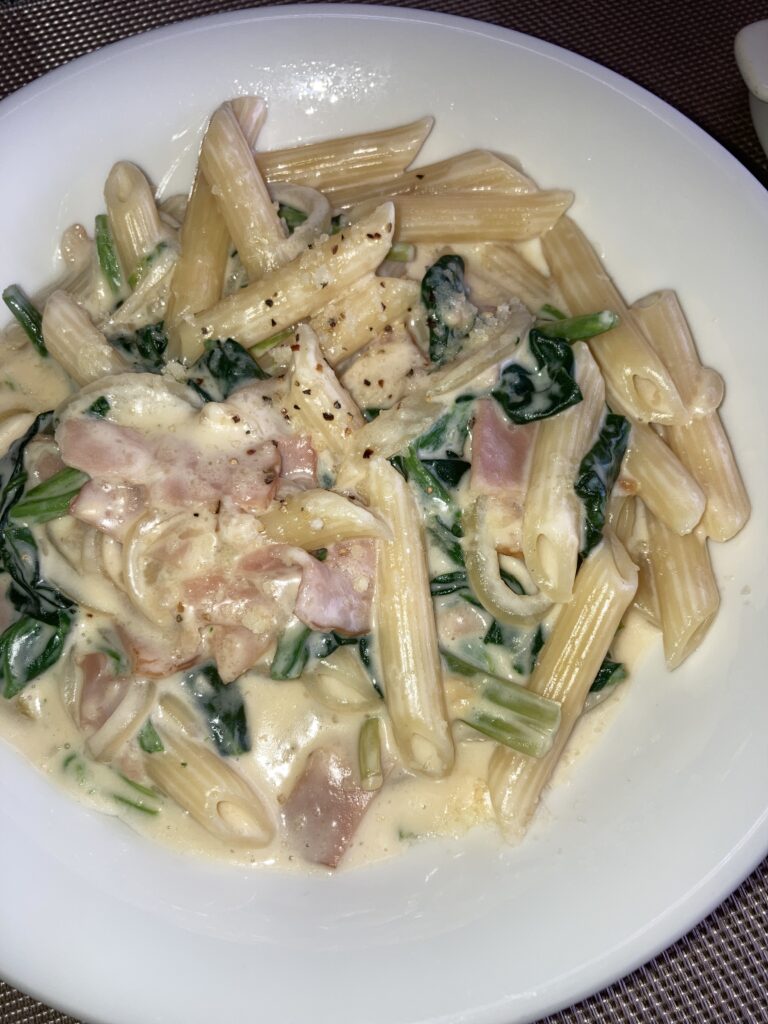 ほうれん草のチーズクリームパスタ
